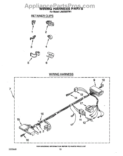 Parts for Whirlpool LA6058XTN1: 09 - Wiring Harness Parts