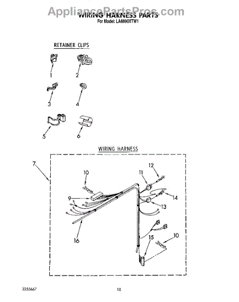 Parts for Whirlpool LA6090XTW1: 09 - Wiring Harness Parts