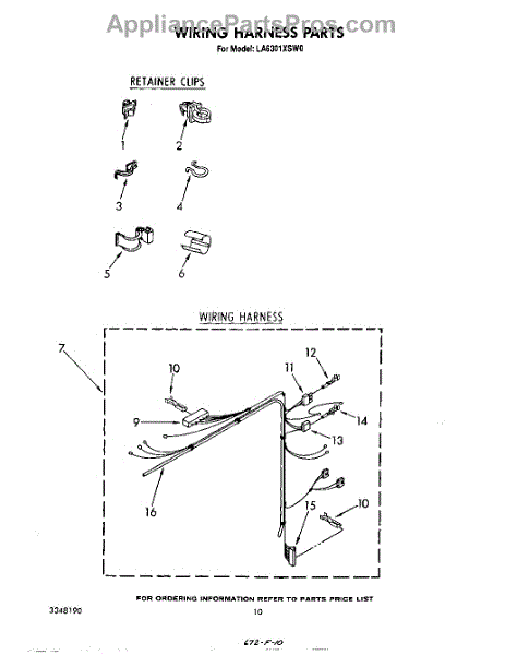 Parts for Whirlpool LA6301XSW0: 09 - Wiring Harness Parts