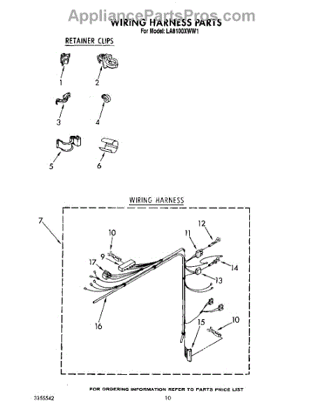 Parts for Whirlpool LA8100XWW1: 09 - Wiring Harness Parts
