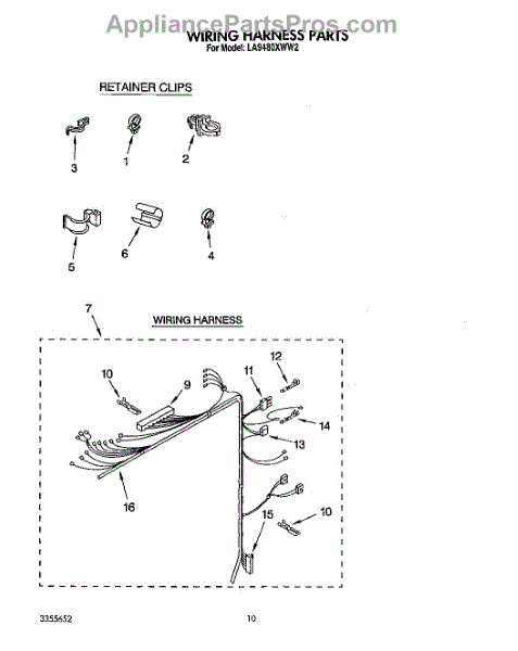 Parts for Whirlpool LA9480XWN2: 09 - Wiring Harness Parts