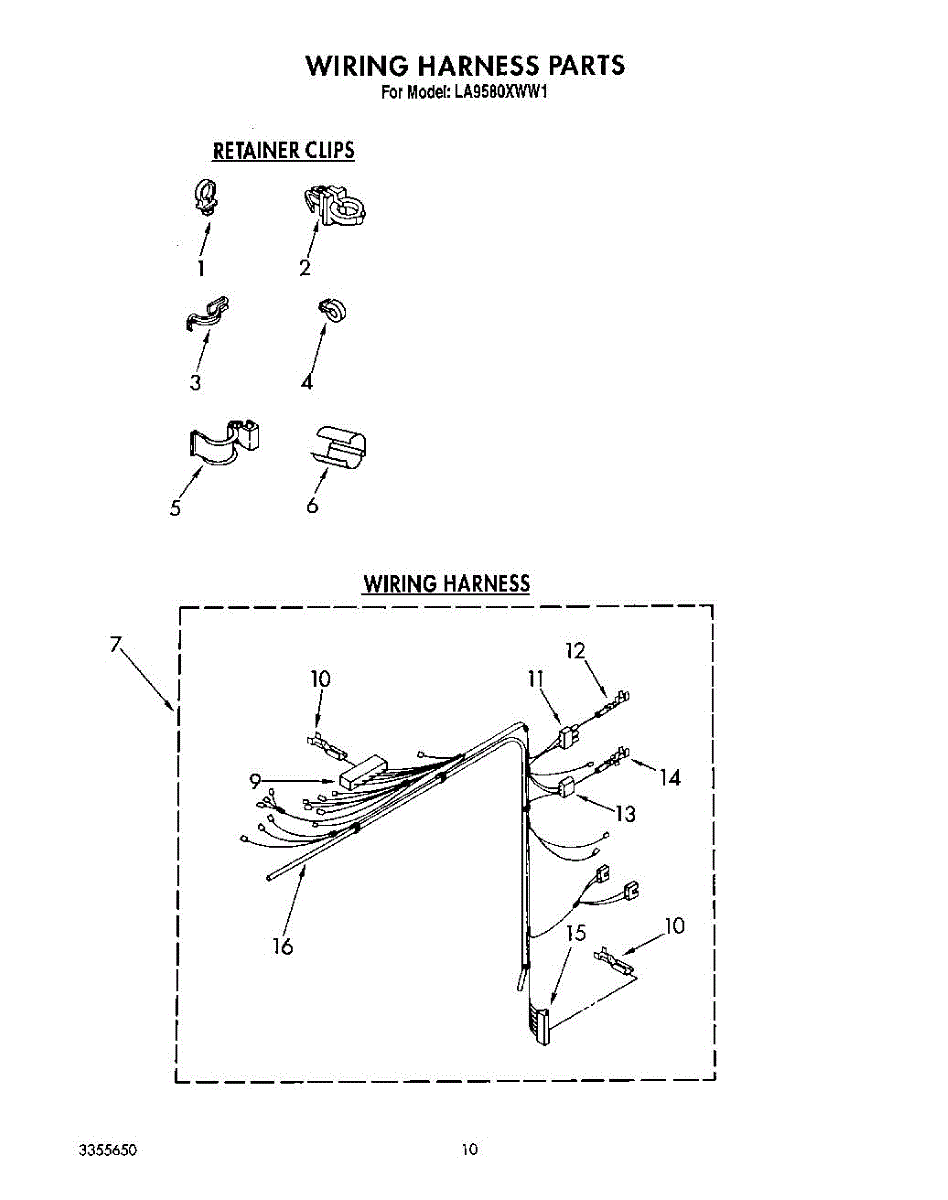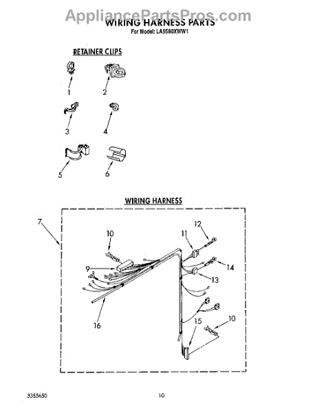 Parts for Whirlpool LA9580XWM1: 09 - Wiring Harness Parts