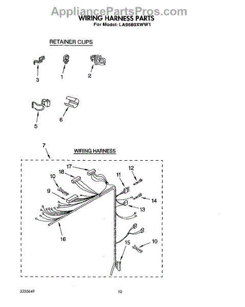 Parts for Whirlpool LA9680XWM1: 09 - Wiring Harness Parts