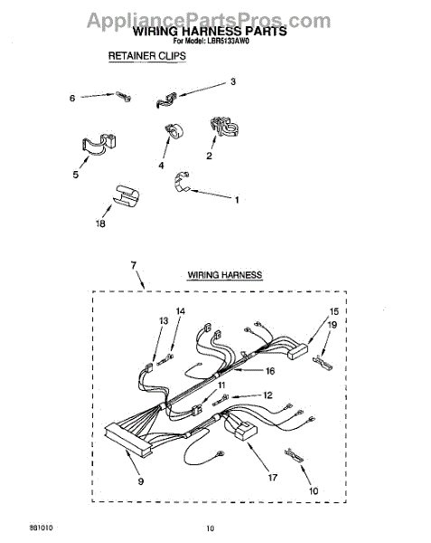Parts for Whirlpool LBR5133AW0: 09 - Wiring Harness Parts