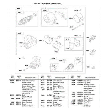 Parts for Briggs & Stratton 522447-0406-E2: 1.0 Kw Starter Motor Parts