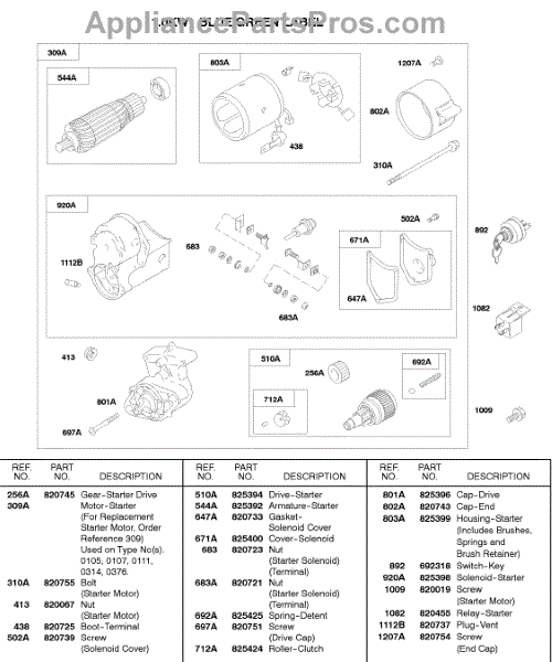 Parts for Briggs & Stratton 522447-0476-E2: 1.0 Kw Starter Motor Parts