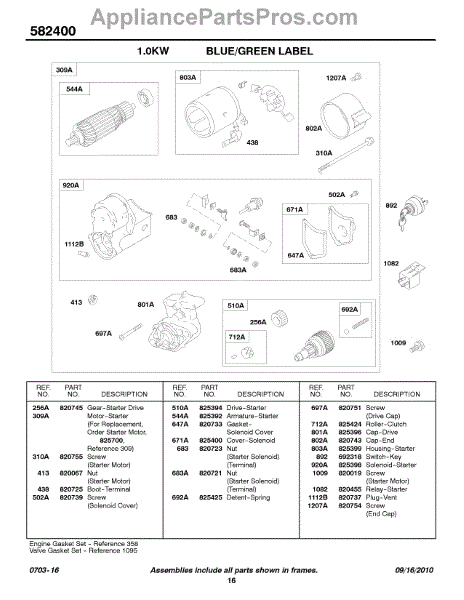 Parts for Briggs & Stratton 582447-0225-E2: 1.0 Kw Electric Starter Parts