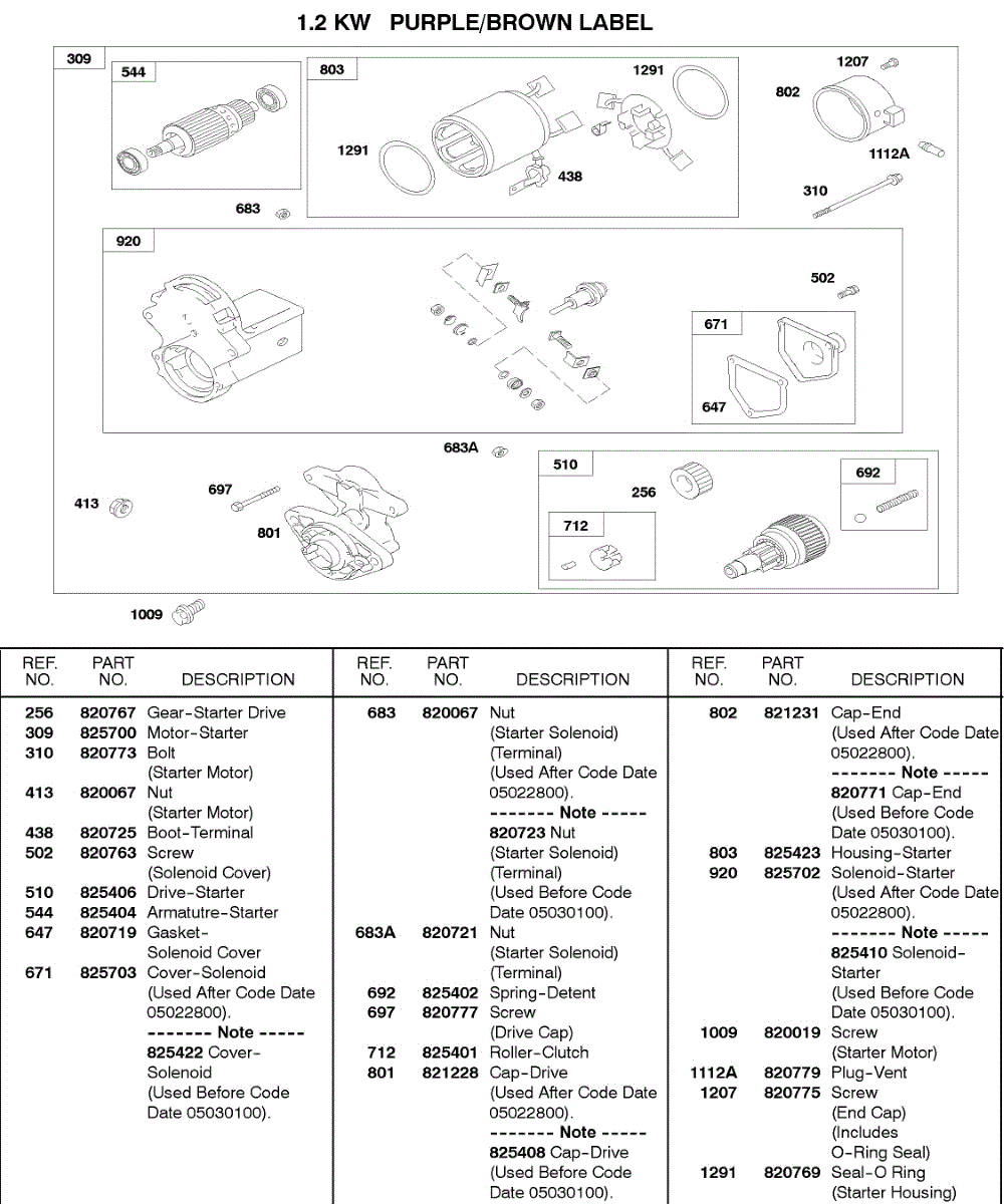 Parts for Briggs & Stratton 522447-0109-E2: 1.2 Kw Starter Motor Parts