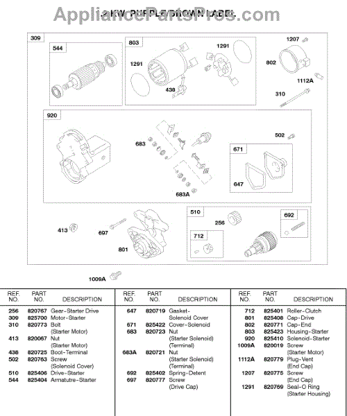 Parts for Briggs & Stratton 588447-0316-E2: 1.2 Kw Starter Motor Parts