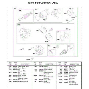 Parts for Briggs & Stratton 588447-0477-E2: 1.2 Kw Starter Motor Parts