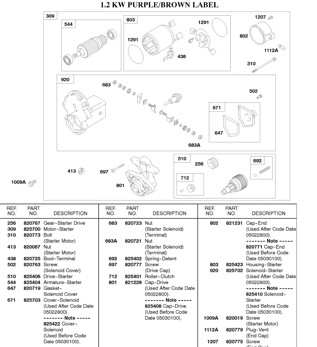 Parts for Briggs & Stratton 58A447-0309-E2: 1.2 Kw Starter Motor Purple / Brown Label Parts