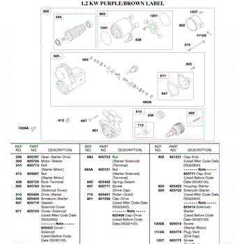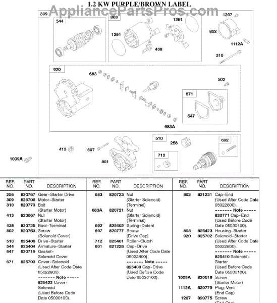 Parts for Briggs & Stratton 58A447-0335-E2: 1.2 Kw Starter Motor Purple / Brown Label Parts