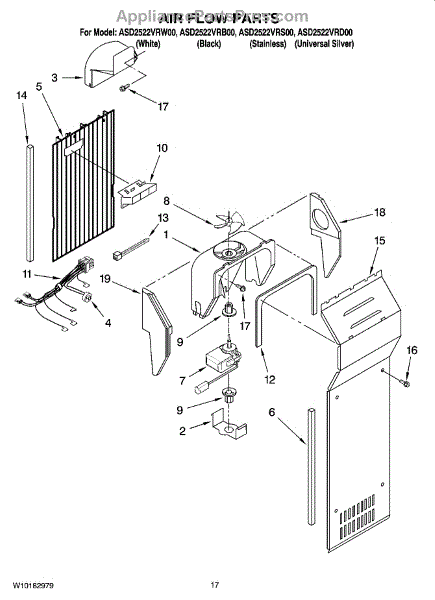 The Evaporator Fan Motor is an OEM replacement part for Whirlpool refrigerators. Located inside the refrigerator compartment, it powers the evaporator fan, which circulates air across the cooling coils. This is the motor only. For the blade order part number WP2169142.