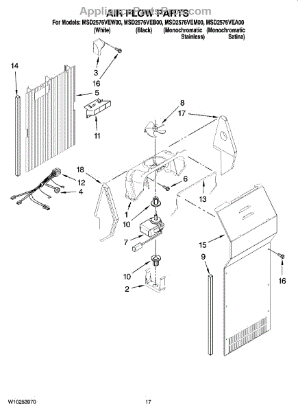 The Evaporator Fan Motor is an OEM replacement part for Whirlpool refrigerators. Located inside the refrigerator compartment, it powers the evaporator fan, which circulates air across the cooling coils. This is the motor only. For the blade order part number WP2169142.