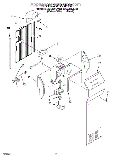This fan scroll is the plastic housing that surrounds the evaporator fan in the freezer section. It directs air across the evaporator coils and into the ducts, helping your refrigerator move cold air evenly and maintain stable temperatures.