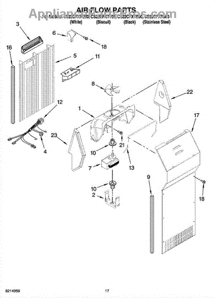 This fan scroll is the molded blower housing that directs airflow from the appliance fan for efficient cooling and ventilation. Replacing a damaged scroll restores proper air path and reduces airflow noise or performance issues. What it does