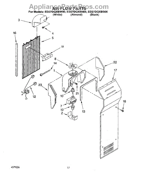 The Evaporator Fan Motor is an OEM replacement part for Whirlpool refrigerators. Located inside the refrigerator compartment, it powers the evaporator fan, which circulates air across the cooling coils. This is the motor only. For the blade order part number WP2169142.
