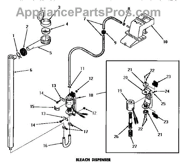 Parts for Amana DA6223: 10 - Bleach Dispenser Parts