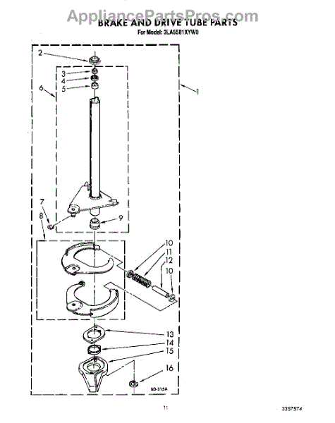 Parts for Whirlpool 3LA5581XYN0: 10 - Brake And Drive Tube Parts