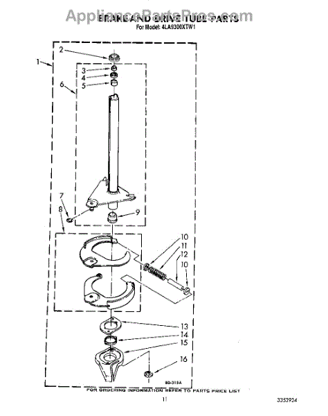 Parts for Whirlpool 4LA9300XTG1: 10 - Brake And Drive Tube Parts