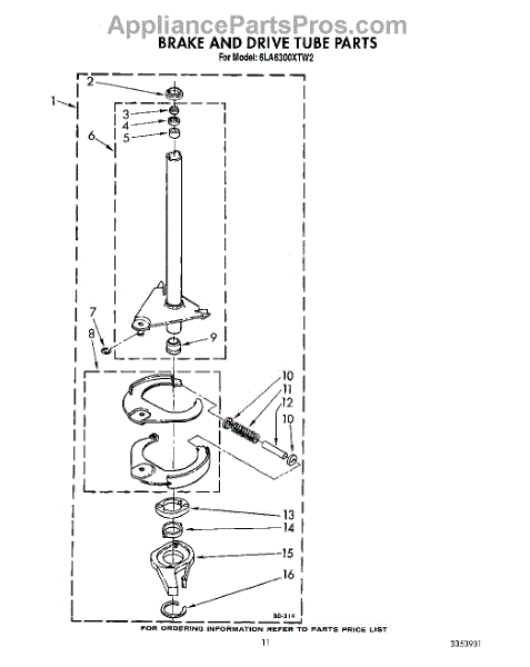 Parts for Whirlpool 6LA6300XTG2: 10 - Brake And Drive Tube Parts