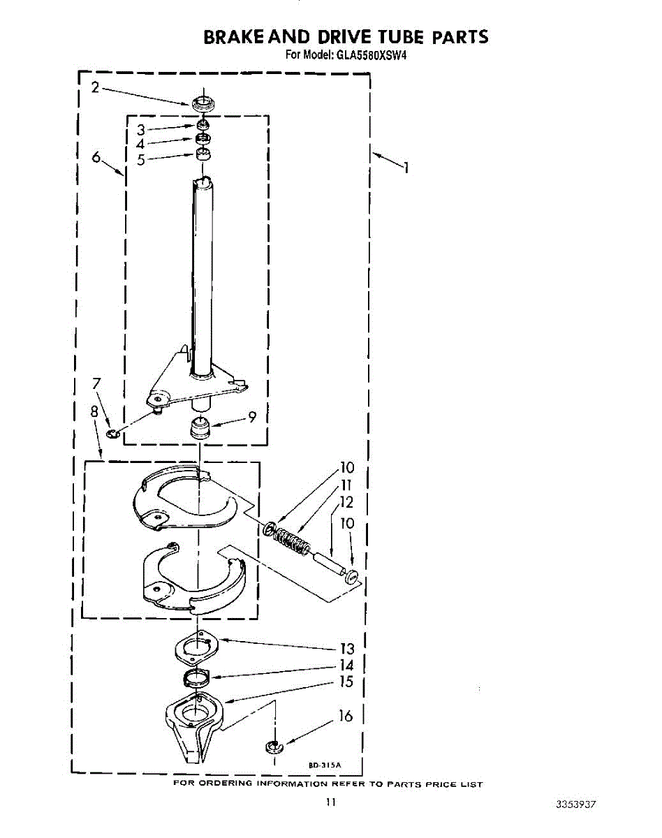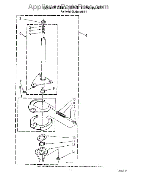 Parts for Whirlpool GLA5580XSG4: 10 - Brake And Drive Tube Parts