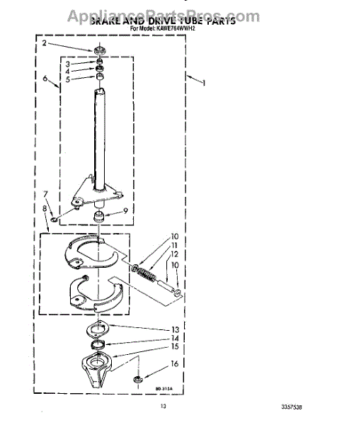Parts for Kitchenaid KAWE764WAL2: 10 - Brake And Drive Tube Parts