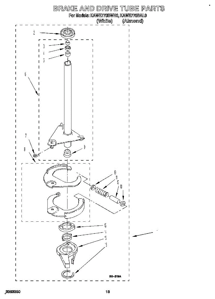 Parts for Kitchenaid KAWE770BAL0: 10 - Brake And Drive Tube Parts