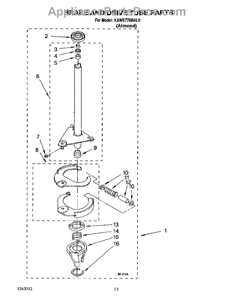 Parts for Kitchenaid KAWE778BAL0: 10 - Brake And Drive Tube Parts