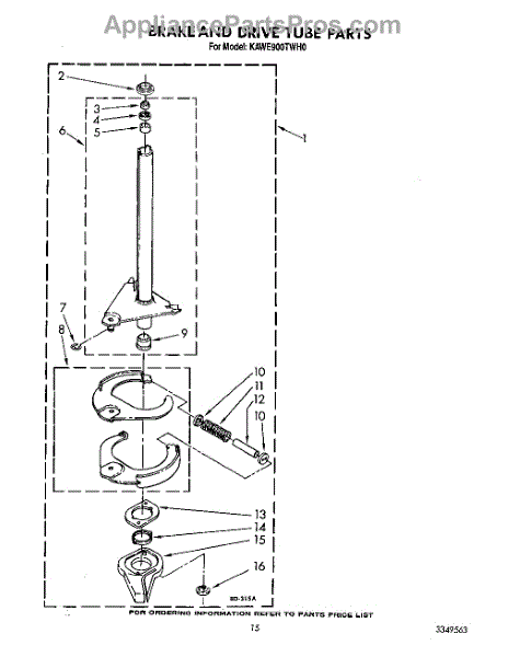 Parts for Kitchenaid KAWE900TWH0: 10 - Brake And Drive Tube Parts