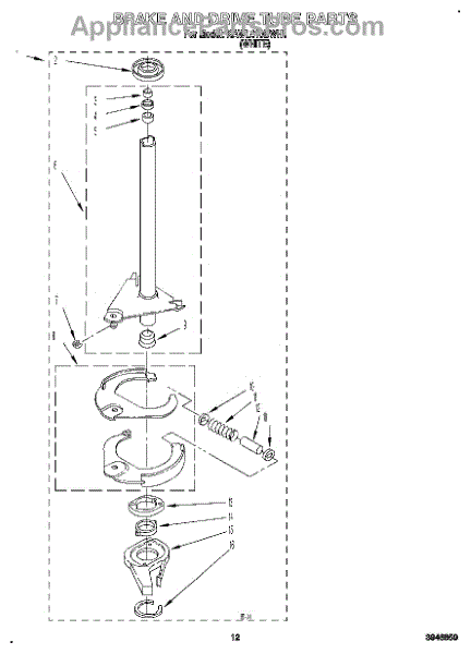 Parts for Kitchenaid KAWL410BWH1: 10 - Brake And Drive Tube Parts