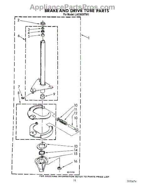 Parts for Whirlpool LA5380XTM1: 10 - Brake And Drive Tube Parts