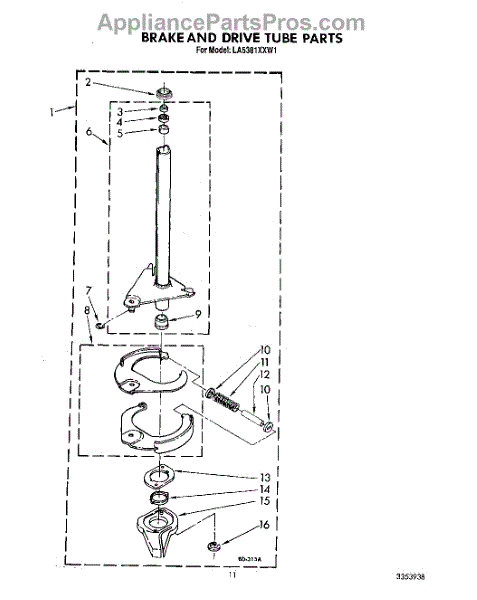 Parts for Whirlpool LA5381XXG1: 10 - Brake And Drive Tube Parts
