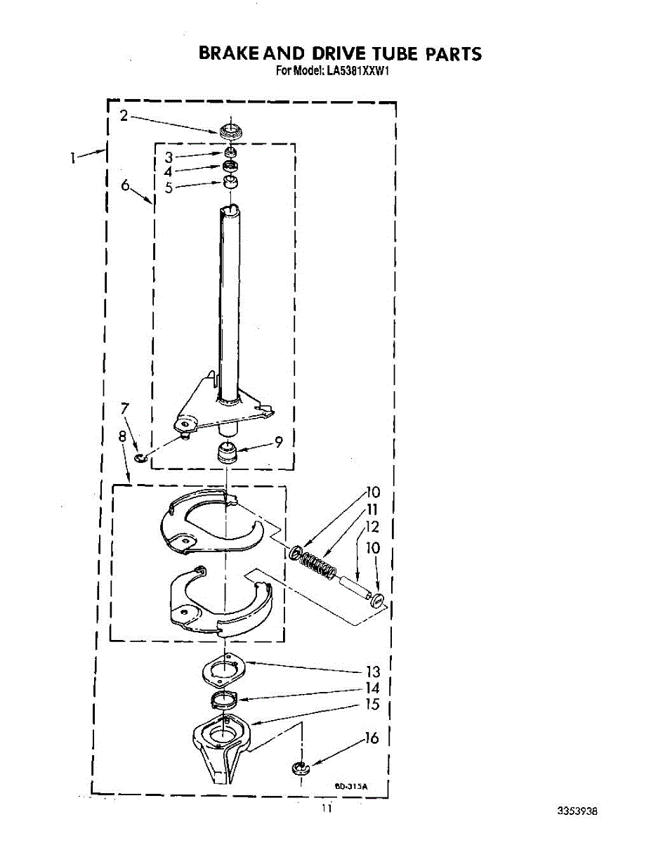 Spin tube assembly with drive spacer, bearing, and shaft seals. Replace if washer leaks from bottom or basket doesn't spin properly. Verify fit.