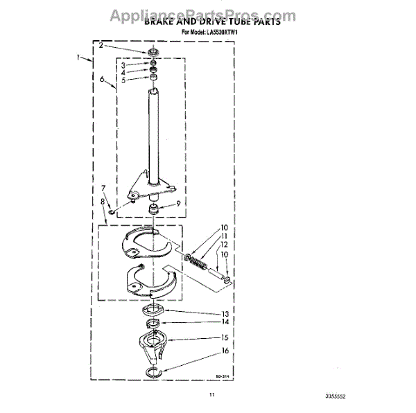 Parts for Whirlpool LA5530XTF1: 10 - Brake And Drive Tube Parts