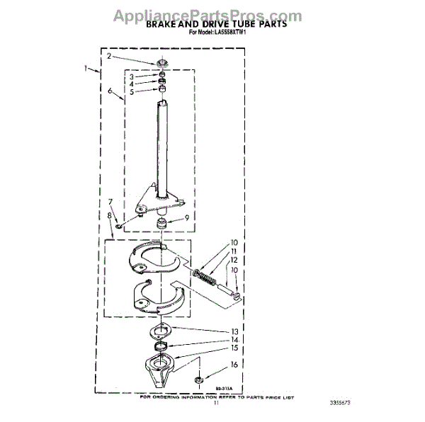 Parts for Whirlpool LA5558XTF1: 10 - Brake And Drive Tube Parts