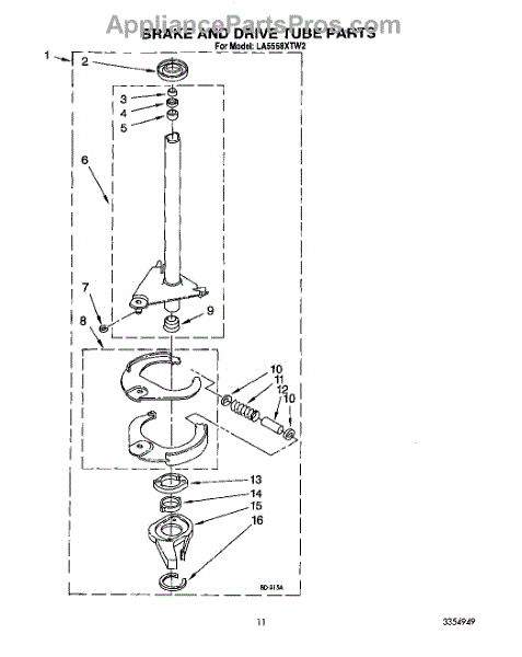 Parts for Whirlpool LA5558XTG2: 10 - Brake And Drive Tube Parts