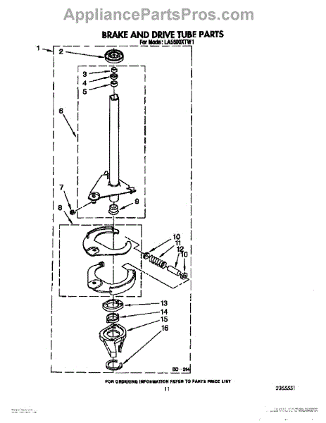 Parts for Whirlpool LA5600XTG1: 10 - Brake And Drive Tube Parts
