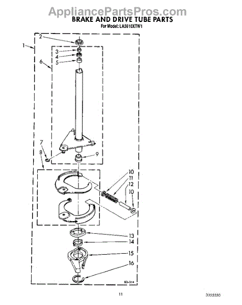 Parts for Whirlpool LA5610XTW1: 10 - Brake And Drive Tube Parts