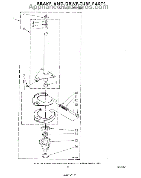 Parts for Whirlpool LA6053XSW0: 10 - Brake And Drive Tube Parts
