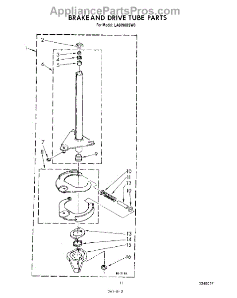 Parts for Whirlpool LA6090XSW0: 10 - Brake And Drive Tube Parts