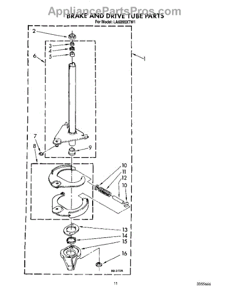 Parts for Whirlpool LA6098XTG1: 10 - Brake And Drive Tube Parts