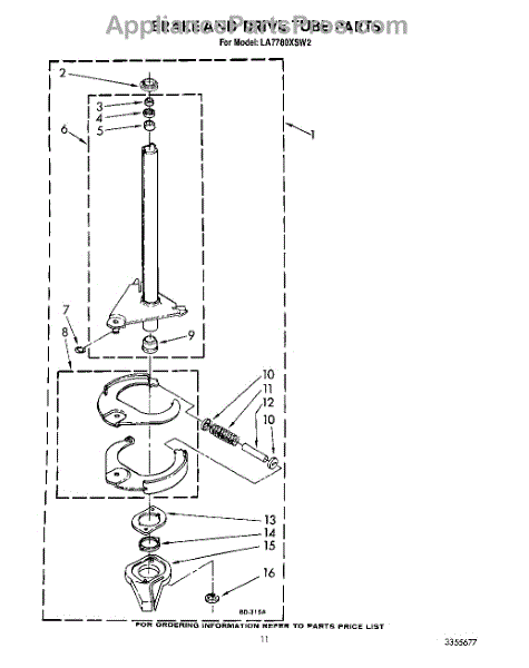 Parts for Whirlpool LA7780XSW2: 10 - Brake And Drive Tube Parts