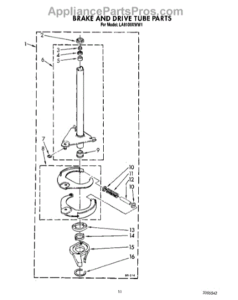 Parts for Whirlpool LA8100XWW1: 10 - Brake And Drive Tube Parts