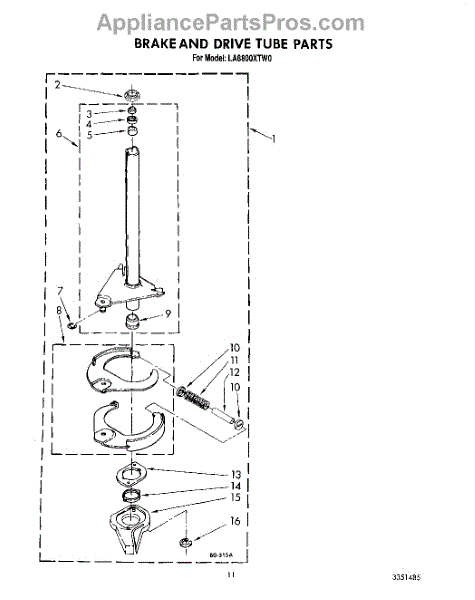 Parts for Whirlpool LA8800XTM0: 10 - Brake And Drive Tube Parts