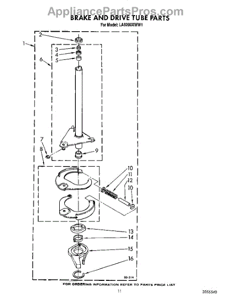 Parts for Whirlpool LA9200XWG1: 10 - Brake And Drive Tube Parts