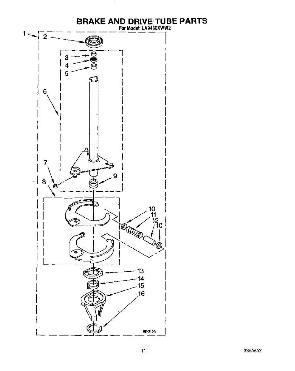 Parts for Whirlpool LA9480XWW2: 10 - Brake And Drive Tube Parts
