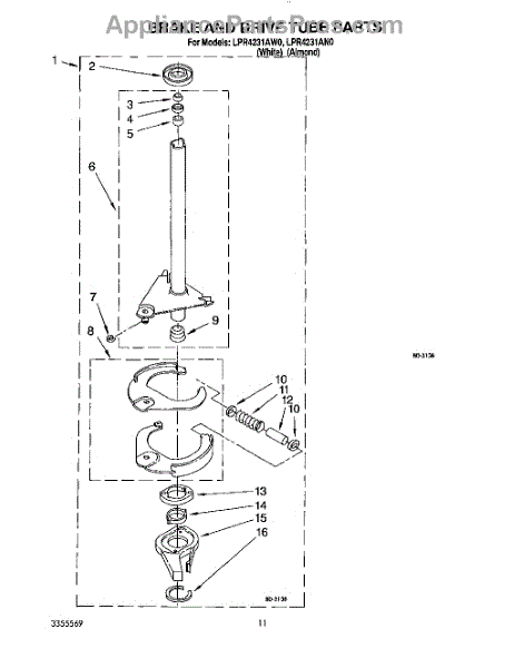 Parts for Whirlpool LPR4231AW0: 10 - Brake And Drive Tube Parts