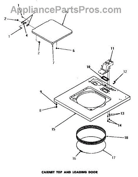Parts for Amana DA6071: 10 - Cabinet Top & Loading Door Parts