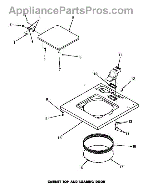 Parts for Amana DA6100: 10 - Cabinet Top & Loading Door Parts